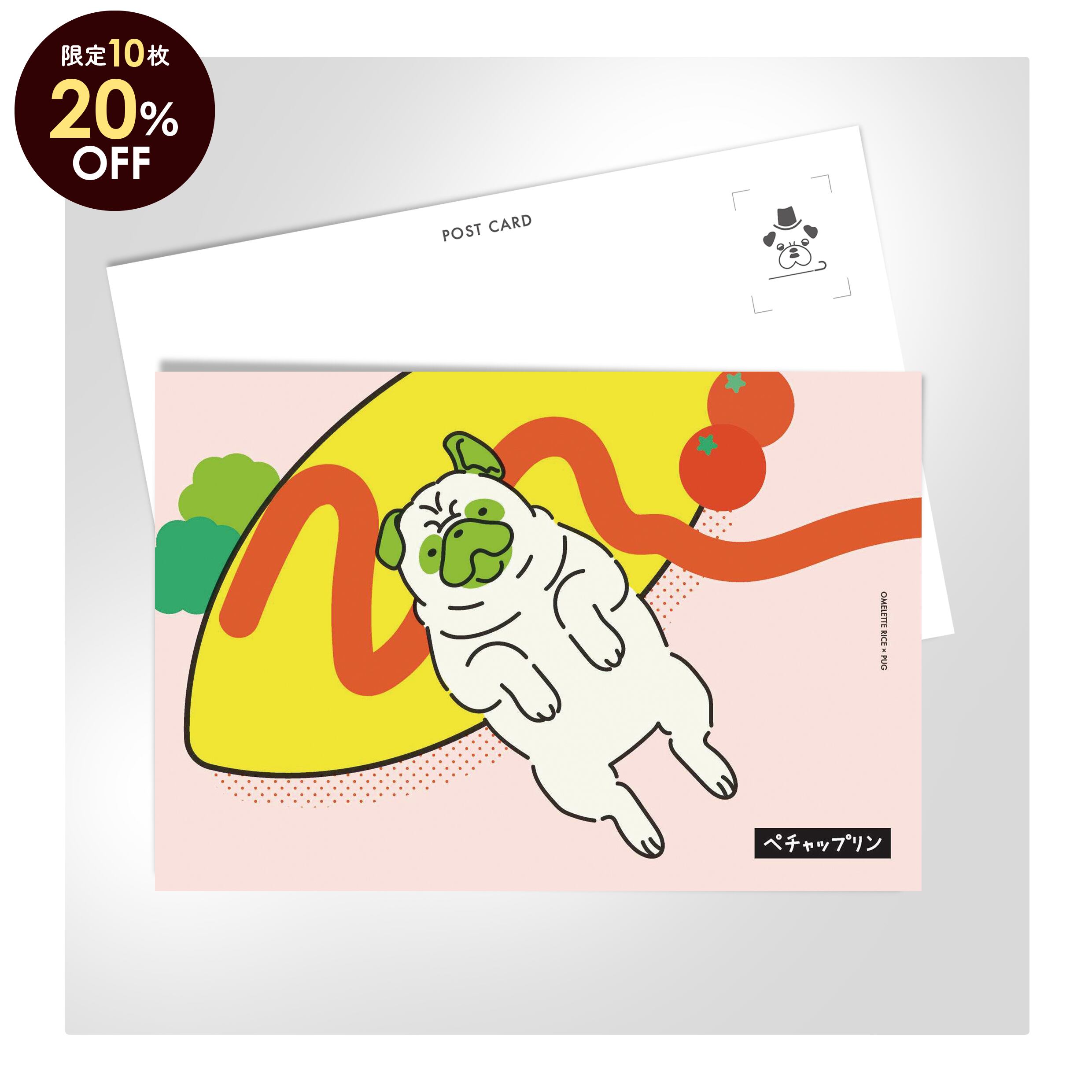 【限定10枚!! 20%off】POPアート風ポストカード「オムライスパグ」